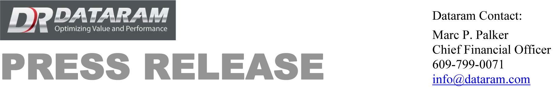 DATARAM to Raise $659,250 in Registered Direct Offering